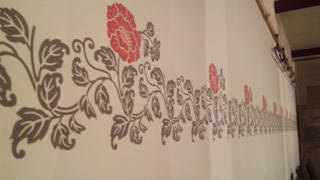 「ぼたん」という店なだけに壁紙はぼたん。